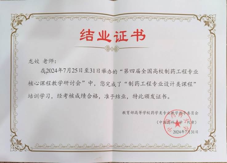 本網訊(通訊員 龍姣 王海峰)2024年7月,教育部高等學校藥學類專業教指委成功舉辦了2024年全國高校制藥工程專業教育研讨會以及第四屆全國高校制藥工程專業核心課程教學研讨會。教育研讨會19-21日在大連舉辦,承辦單位為大連大學;教學研讨會25-31日在石家莊舉辦,承辦單位為石家莊學院。兩場會議圍繞制藥工程專業創新人才培養和提高教學質量開展研讨,主旨分别是“适應新質生産力發展需求,培養制藥工程創新人才”、“進一步提高全國高校制藥工程專業辦學水平,提升制藥工程專業核心課程的教學質量”。我院張珩教授和劉根炎教授受邀分别在兩場會議上做了報告,并擔任核心課程教學研讨會的授課專家,親赴石家莊以嶺藥業及四藥集團進行現場教學與交流研讨指導工作。