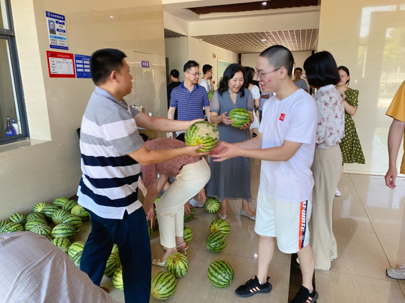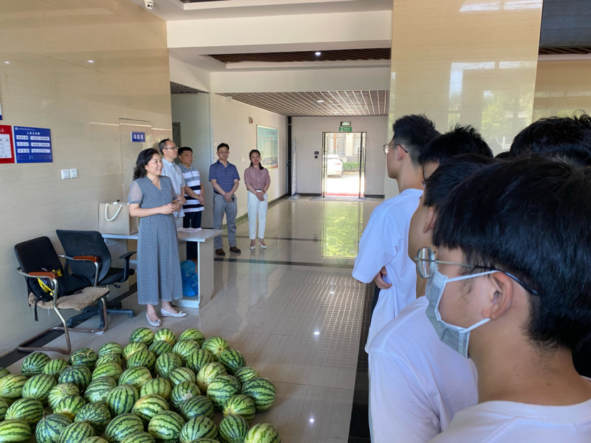 學院領導還為留校開展科研、備賽備考的學生送去清涼解暑的西瓜,并和同學們親切交談,了解他們在生活、學習方面的需求和困難,提醒同學們疫情防控常抓不懈,切實樹牢安全意識、适當鍛煉身體,合理健康飲食,做好自我教育、自我管理、自我服務,維護好學院暑期的和諧與穩定。
