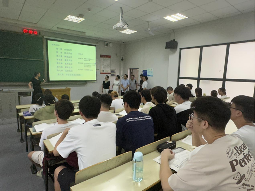 9月2日,學院黨委副書記周丹,副院長餘響林、古雙喜,院長助理吳華東,化工系教師張林鋒,制藥系教師吳風收以及輔導員深入學生課堂,檢查學院開學第一課情況,勉勵學院師生以飽滿的精神狀态投入到新學期工作中去。