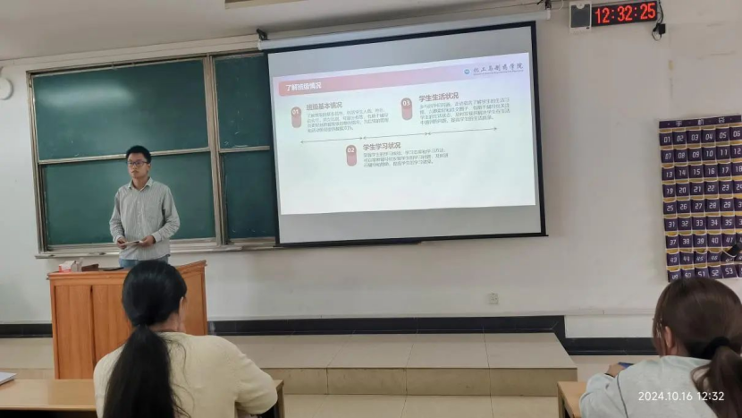 為了更好推進學院新生班級建設工作,幫助班委更好的了解工作内容,建立好“校院班”三級之間的溝通橋梁,暢通反饋渠道,為新學期的班級建設與管理奠定堅實基礎,培養一批有責任、有擔當、有能力的班委隊伍,2024級本科班委培訓會由學院輔導員翟森穩、張錦分别從“班委職責”“溝通技巧”“班級建設”“時間管理”“應對壓力”“工作方式”等方面展開培訓。