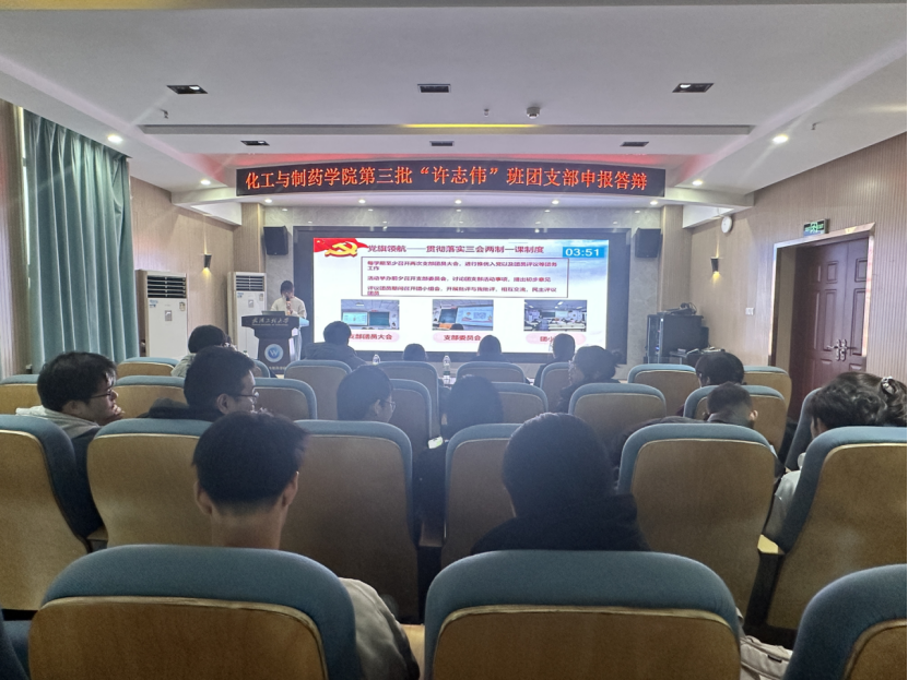 本網訊(通訊員 張小琪)為弘揚許志偉精神,傳承薪火初心,11月28日下午,77779193永利官网在化工大樓610舉行第三期許志偉班團支部争創活動,學院黨委副書記周丹、化工系主任熊芸、藥物制劑系主任馮菊紅及各年級輔導員出席活動,活動由學工辦主任張小琪主持。