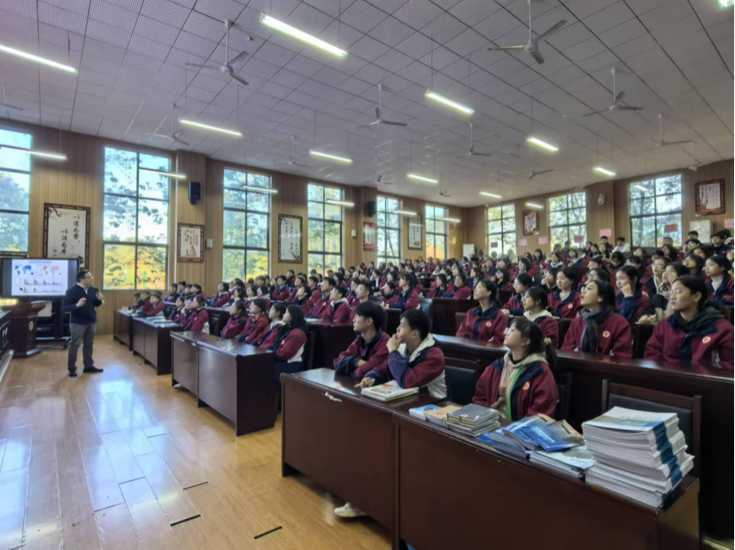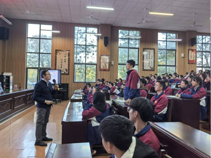 吳風收教授聚焦“腫瘤光學診斷與治療”,為百餘名高三學生作專題報告。在講座中,吳風收教授深入淺出地向高三學子介紹腫瘤光學診斷與治療這一前沿領域。他從基礎概念講起,逐步深入到複雜的技術原理和應用前景,結合生動的臨床案例和形象的圖片、視頻資料,讓同學們對這一專業性極強的領域有了初步的認識和理解。同學們不僅全神貫注地聆聽,還認真記錄着關鍵知識點。
