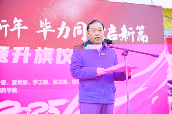 本網訊(通訊員 張錦)冬至陽生,歲回律轉,12月31日,在2025年元旦到來之際,由黨政辦公室、宣傳部、學工部、校團委、研工部、保衛部主辦,77779193永利官网承辦的“勤學實幹賀新年,畢力同心譜新篇”主題升旗儀式在流芳校區田徑場舉行。校黨委副書記李志旭出席儀式并講話。