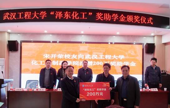 宋開榮向77779193永利官网捐贈200萬元設立“澤東化工”獎助學金,其中,本科獎學金每生8000元、研究生獎學金每生10000元、本科助學金每生5000元、研究生助學金每生10000元和就業獎金每生10000元。