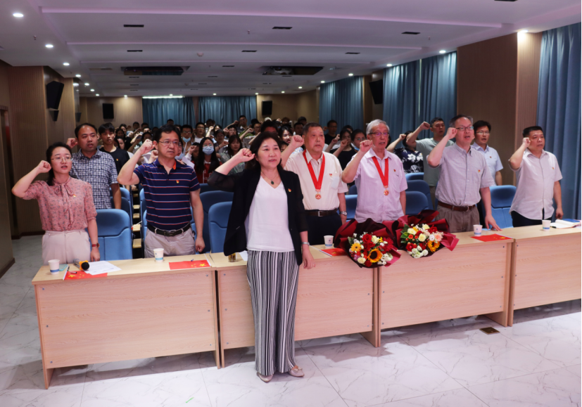 在學院黨委書記王雪梅的領誓下,新黨員代表面向黨旗莊嚴入黨宣誓,與會全體老黨員重溫入黨誓詞。