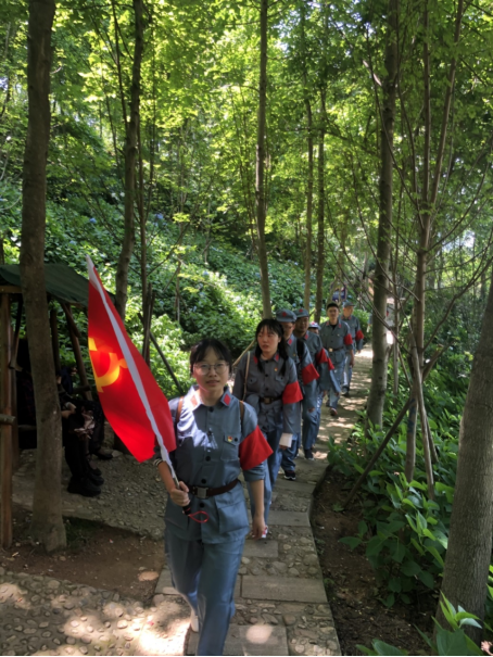 黨旗領航,同志們走在大别山深處,紅軍曾經戰鬥過的地方,盡管天氣炎熱偶有山路崎岖,但大家依然興趣盎然,談論紅軍戰鬥故事的點點滴滴,感歎革命曆史時期大别山人民意志的堅定,深刻體會大别山精神的豐富内涵。