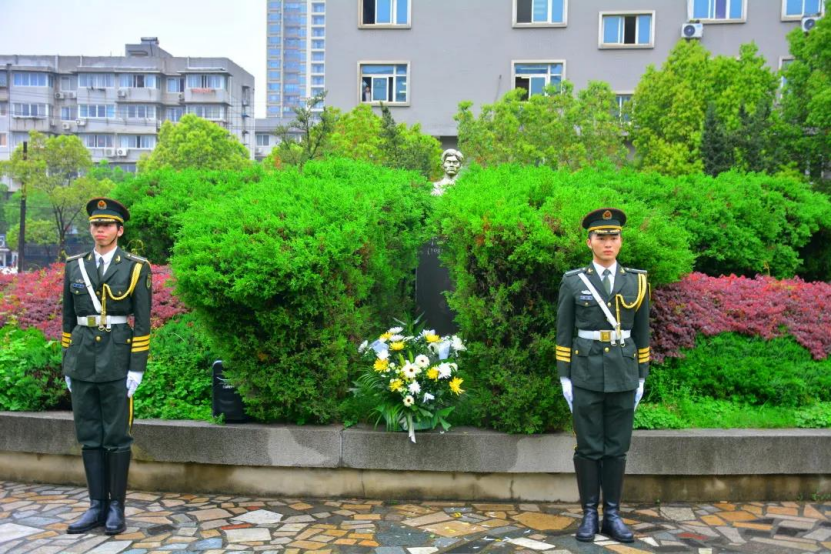 師生集聚許志偉紀念廣場,懷着最崇高的敬意,深切緬懷烈士許志偉。莊嚴的樂聲奏起,訓練有素、步伐堅定的國旗護衛隊緩步走來,為烈士許志偉同志敬獻花籃。化藥學院黨委副書記周丹和材料學院黨委副書記張瓊上前為烈士許志偉整理挽聯,并深鞠躬以緻敬。