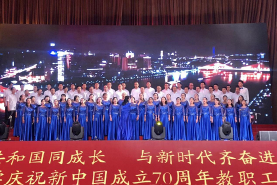為迎接新中國成立70周年,展現我校教職工愛崗敬業、立足本職、團結奉獻、健康向上的精神風貌,引領廣大教職工以嶄新的精神狀态和一流的工作業績向70華誕獻禮,6月18日下午,我校“慶祝新中國成立七十周年教職工文藝彙演”在流芳校區大禮堂隆重舉行。本次文藝彙演以“與共和國同成長、與新時代齊奮進”為主題,充分展示廣大教職工政治堅定、昂揚向上的精神風貌,大力倡導勞動光榮、職工偉大的時代主旋律,為慶祝新中國成立70周年營造良好氛圍、凝聚強大正能量。全校各院(部)、各單位選送了與主題相關的22個文藝節目參加文藝彙演,我院演出的節目——大合唱《歌唱祖》、《我和我的祖國》榮獲二等獎。