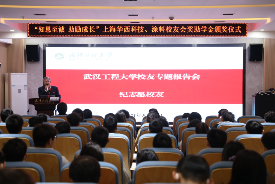 報告環節中,紀志願校友分享了自身求學經曆、創業故事、行業發展、設立獎學金的初衷和對母校的感恩之情,為同學講述一堂生動的專業認同、行業認知教育課,提高學生對專業深入認識,希望工大學子不受家庭經濟負擔等因素影響,能專心完成學業,珍惜時光,努力汲取知識,釋放光彩。