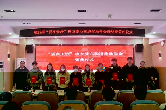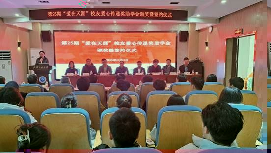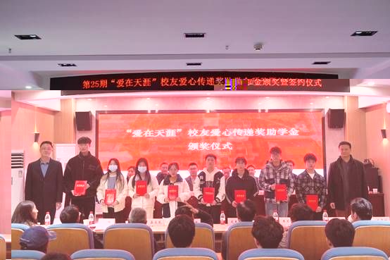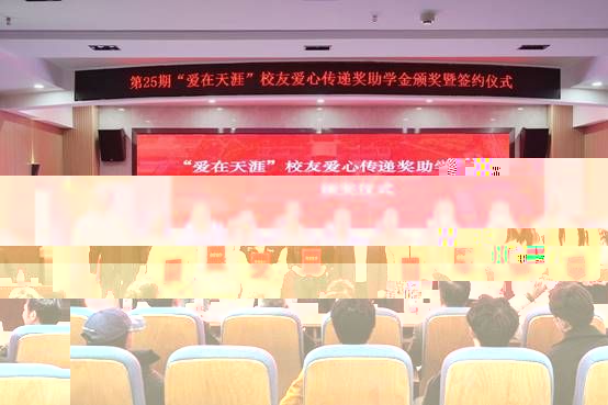 本網訊(通訊員 湯曦)12月3日,77779193永利官网第25期“愛在天涯”校友愛心傳遞獎助學金頒獎暨簽約儀式在流芳校區大化工樓報告廳舉行。校黨委副書記李志旭,設獎校友代表周劍淩、劉繼君、彭學凡、尚莉、晏文茂、鄢舒意、王蘭輝、黎柏軍、楊柳出席儀式。