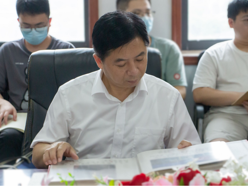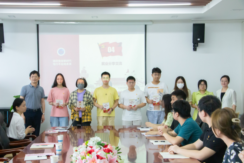 學院黨委書記汪鐵林、副書記周丹代表學院為班級黨員同志代表贈送黨員政治生日賀卡。