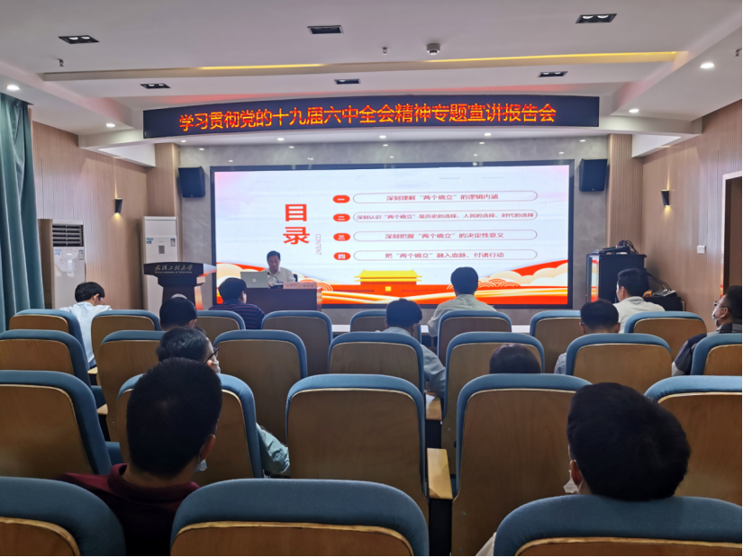 整場宣講報告主題鮮明、内容豐富、振奮人心、意猶未盡,針對性、指導性和實踐性強,既是一場精彩的理論宣講,更是一次促進學校高質量發展的精準指導,讓與會師生深受教育和啟發。大家紛紛表示,要繼續認真學習領會黨的十九屆六中全會精神,進一步深刻認識“兩個确立”的決定性意義,堅決把捍衛“兩個确立”、做到“兩個維護”作為最高政治原則和根本政治規矩,緊密結合校院工作實際和“十四五”規劃,聚焦主責主業,把學習全會精神的思想收獲轉化為推動學校發展的強大動力,以優異成績迎接學校五十周年校慶。