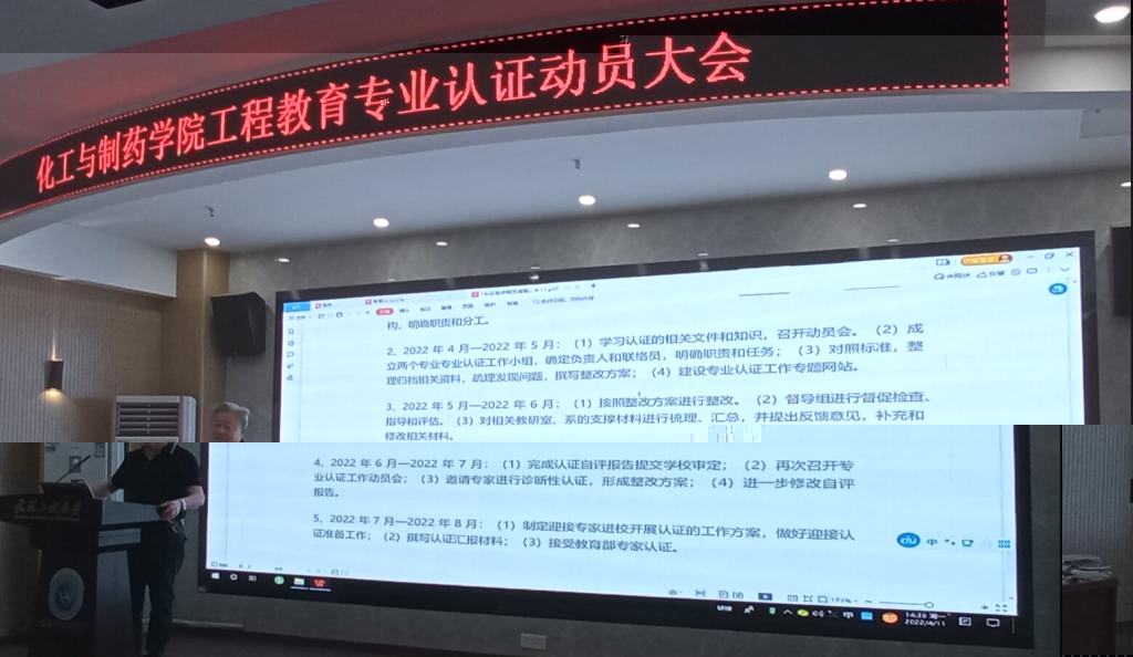 會上,汪書記發表動員講話,首先感謝全院教師對工程教育專業認證工作的支持與付出,同時希望全院教師充分認識到認證工作的重要性,增強責任意識,認真做好工程教育專業認證各項準備工作。他強調,學院要以工程教育認證為抓手,加強學院内涵建設,積極推動專業建設和人才培養質量提升。易院長就兩個專業的工程認證要求和任務安排做了具體分析和部署,提出“共謀、共建、共享”的工程教育專業認證工作思路,要求全院教師樹立主人翁态度,人人參與、齊心協力推進學院專業高質量發展。