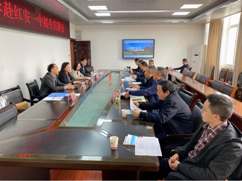 紅安一中校領導對學校招生宣傳隊的到來表示熱烈歡迎,并簡要介紹了紅安一中整體辦學情況。徐偉偉、張盛濤分别就曆年高考情況和本年度高三學情進行了分析介紹。
