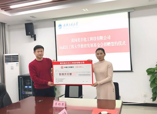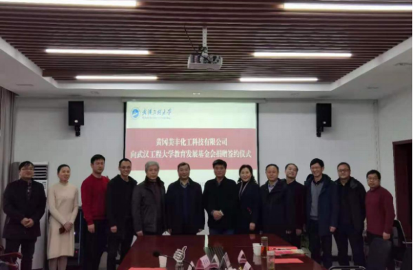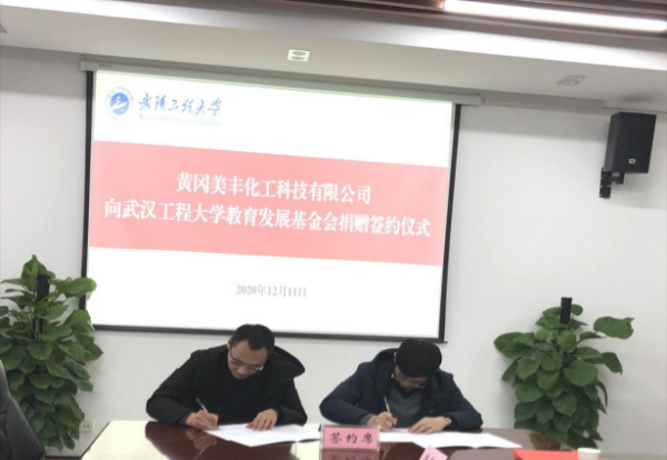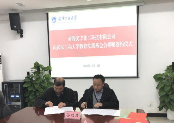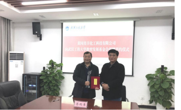 黃岡美豐化工科技有限公司董事長曾鐵鳴先生介紹了公司的基本情況、發展現狀及未來建設領域。曾董事長表示,此次500萬元捐款主要用于建設光化學品工程與技術研究中心,希望校企雙方能進一步加強深度合作,實現共同發展。
