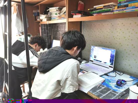 在疫情防控政策下,部分課程從線下轉換成線上授課。為了解學生上網課的效果,及時解決學生遇到的問題,學院領導、輔導員和團委骨幹組成督察小組,定期分批走訪學生宿舍,查看學生上網課情況,深入了解疫情防控期間學生的學習生活與身心健康。走訪過程中,同學們能夠克服實際困難,聚精會神地坐在電腦前進行網課學習,跟着老師的節奏認真記錄筆記。