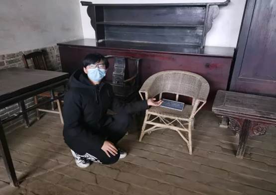 圖為化藥學子陳澤旭在唐山市李大钊故居進行講解