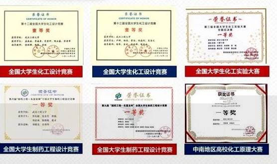 學院學生團隊連續三年蟬聯全國大學生化工設計競賽全國一等獎,“國藥工程-東富龍杯”全國大學生制藥工程設計競賽全國一等獎。在全國大學生化工實驗大賽全國競賽中連續三年取得好成績,分别榮獲全國總決賽國家一等獎,中南賽區特等獎,中南賽區競賽省級二等獎。學院學生在“互聯網+化學反應工程”課模設計大賽、大學生創業大賽創業計劃競賽、全國大學生藥苑論壇等各類競賽中共獲獎30餘項。
