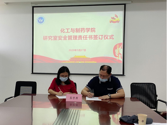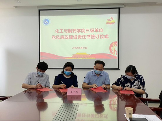 會上,學院黨委書記王雪梅、副院長汪鐵林(主持工作)與三級單位代表教工第三黨支部書記葛燕麗、制藥工程系主任古雙喜簽訂黨風廉政建設責任書。