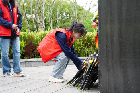 活動上,許志偉黨員示範班、許志偉志願服務隊學生代表向英雄許志偉敬獻花籃表達崇高敬意。全體師生代表面向許志偉雕像,肅穆伫立行默哀禮。