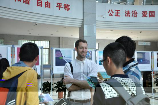 現場不少同學被畫展所吸引,有同學看到了在現場的Yoann老師,還紛紛地同他讨論問題,Yoann老師都一一耐心地解答,并簽名留念。