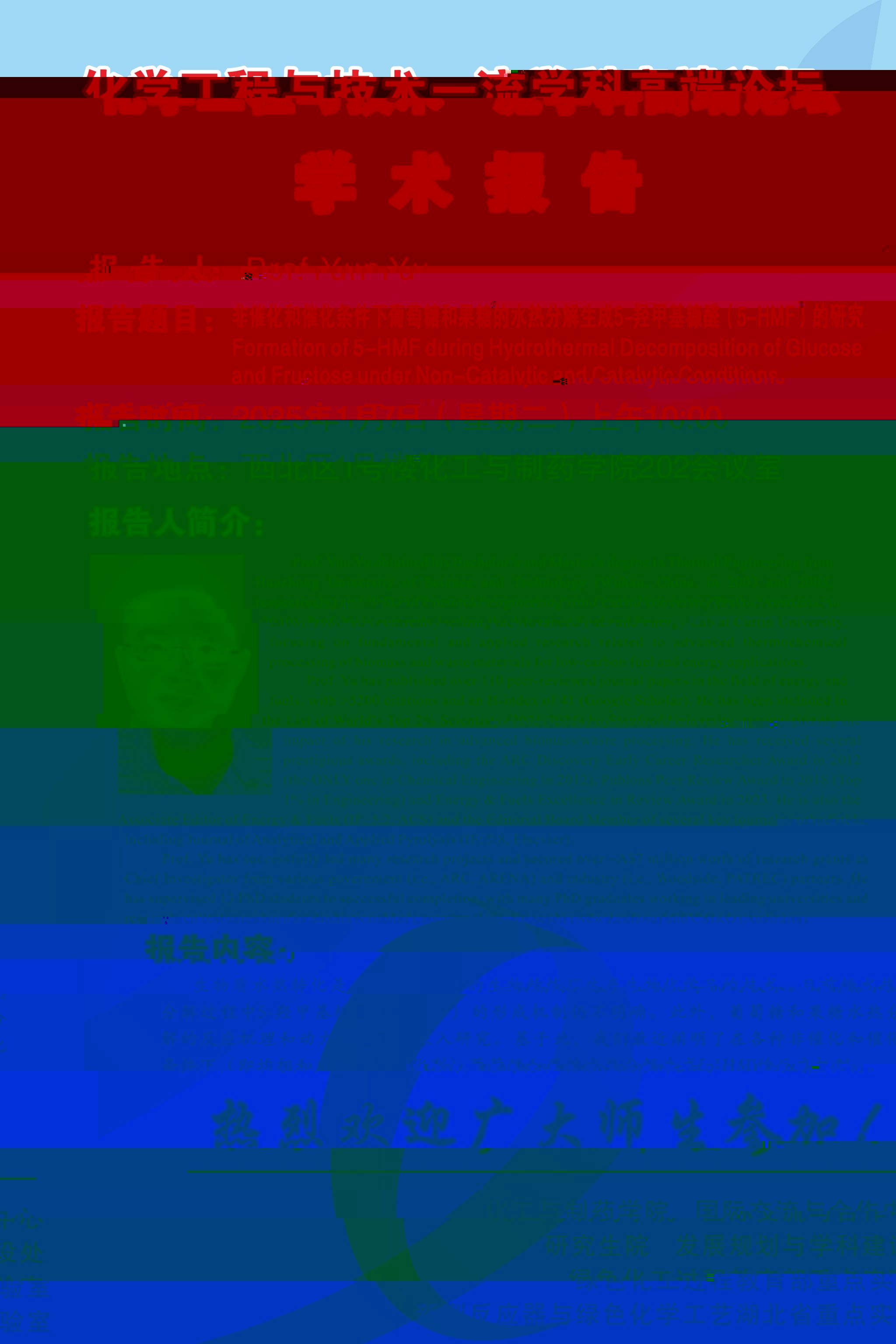 【研究生創新學術論壇】Formation of 5-HMF during Hydrothermal Decomposition of Glucose
