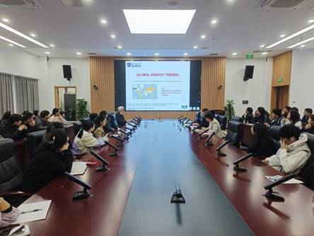 Bill教授以"Sustainable Power Technology -Future Options”為題,針對全球能源發展趨勢,分析了世界主要能源和化石燃料大量消耗原因,在煤炭清潔和二氧化碳減排等方面提出獨到見解。他分析了中國、美國、歐洲的能源利用情況以及各國處理二氧化碳的方法,重點介紹了英國減排二氧化碳的途徑。作為Elsevier期刊《FUEL》主編,Bill教授介紹了該期刊化石能源及可再生能源和清潔能源等主題的論文刊錄範圍,分享了期刊最近五年的論文收錄情況。Bill教授與現場師生就中試研究、二氧化碳捕獲和光伏發電等領域進行了深入讨論,激勵年輕學者在科研道路上不斷進步。